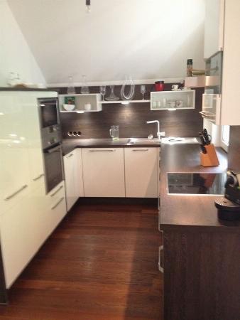Oben angekommen wartet eine schönen großzügige 3-Zimmerwohnung auf Sie, mit einem großen Wohn-/Essbereich mit gemauertem wunderschönen Kamin und einer erst kürzlich fertiggestellten Einbauküche.
